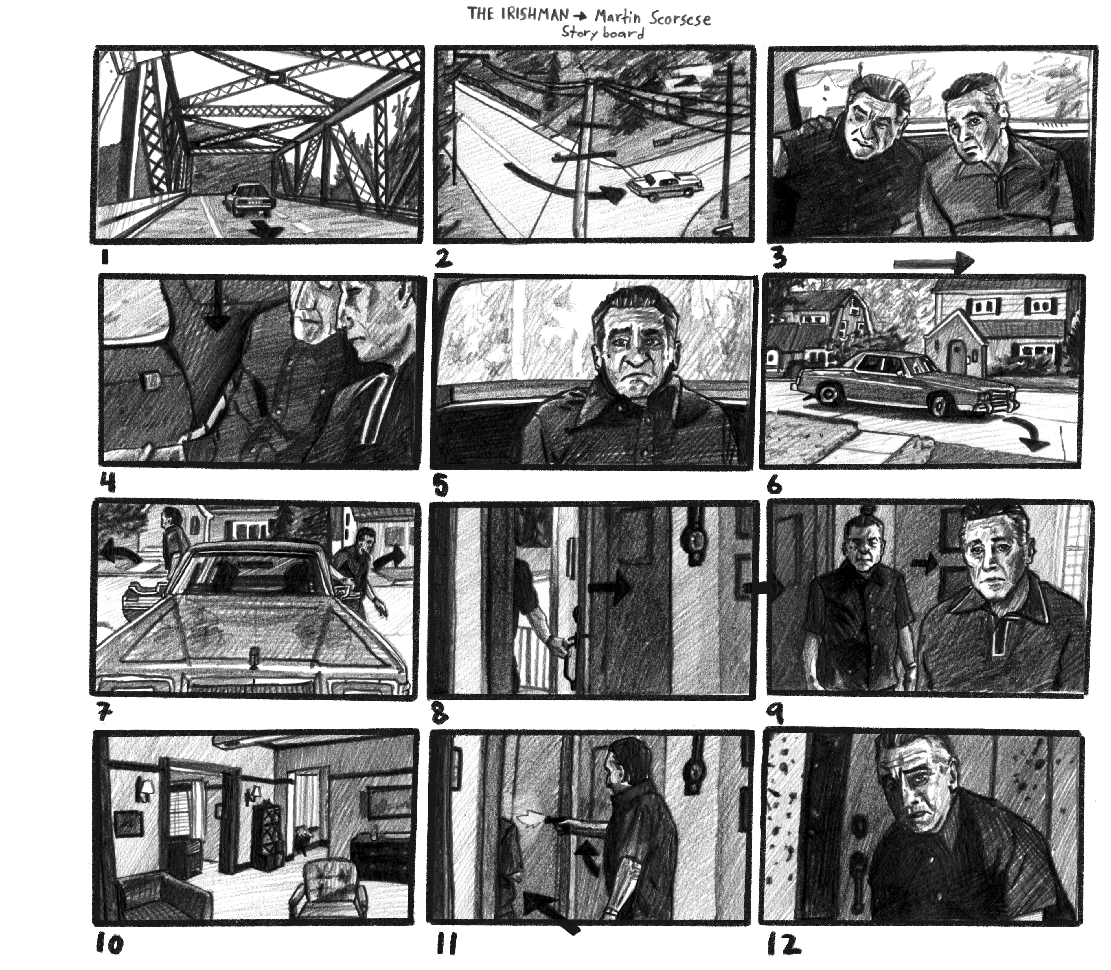 24-Frame Storyboard Study from "The Irishman" Directed by Martin Scorsese