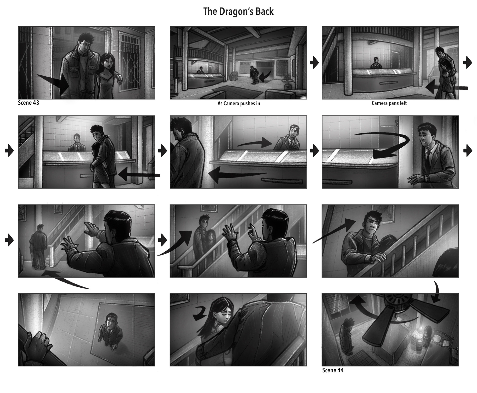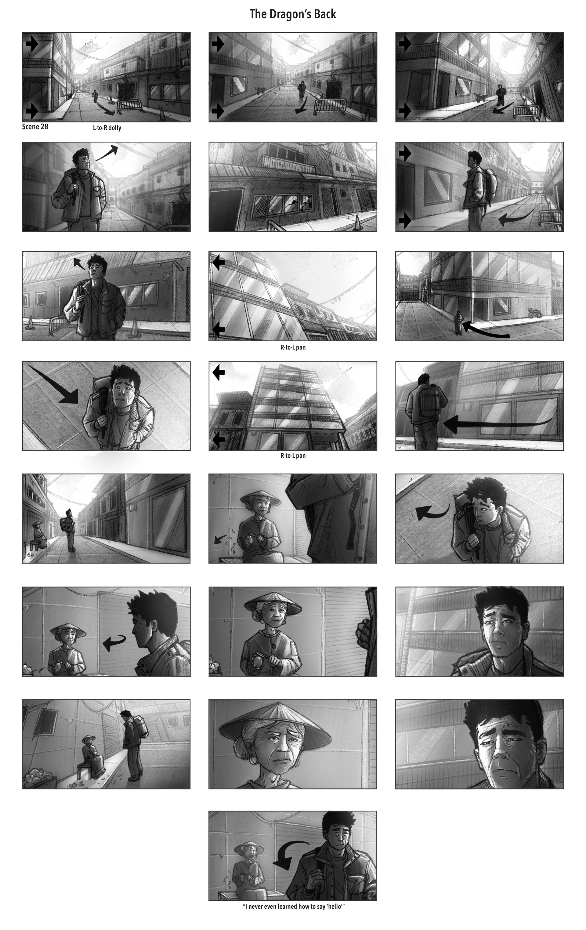 A Collection of Storyboards for Academy Award winning director Michael Uno’s next feature film, “The Dragon’s Back”, written by Dave Hunsaker